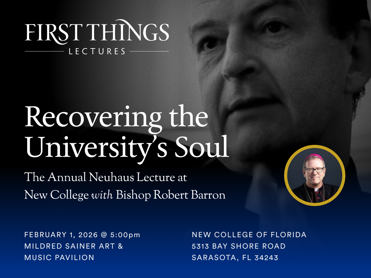 First Things, in partnership with New College of Florida, is pleased to announce Bishop Robert Barron will present this year’s 2026 Neuhaus Lecture “Recovering the University’s Soul: Christian Humanism…
